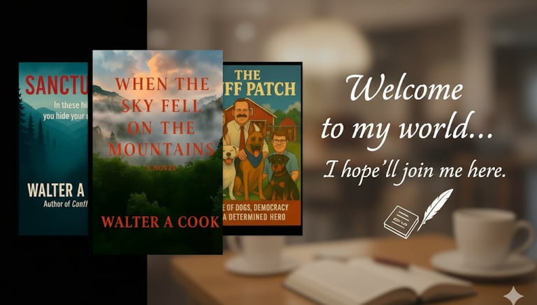 “Well, hey there, friend. Name’s Grady "Grizz" Penland. I reckon if you’ve found your way here, you’re lookin’ for stories that cut deep, stir the soul, or maybe just make you laugh through the ache. Pull up a chair. We’ve got mountains to climb and truths to tell. Call me Grizz. Grizz Penland. I’m the voice of Burningtown, carved outta mountain wind and hard-earned truth. You got questions? I got stories. You want answers? I got reckonings. Whether you’re here for a book, a laugh, or a little fire in your belly. Pull up a chair. When Walt's got his face stuck in a book or a typewriter, he lets me make friends here. Let’s talk like folks used to. Slow, honest, and with a little moonshine on the porch. Sit down and spend a spell.”