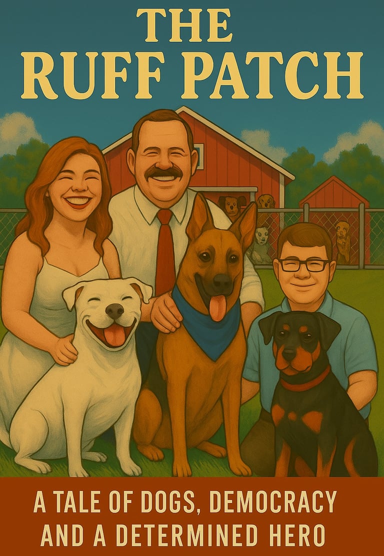 The Ruff Patch is a feel-good political satire that combines the charm of Marley & Me with the grassroots energy of Parks and Recreation, delivering a story about courage, community organizing, and the unlikely heroes who save democracy one paw print at a time.
